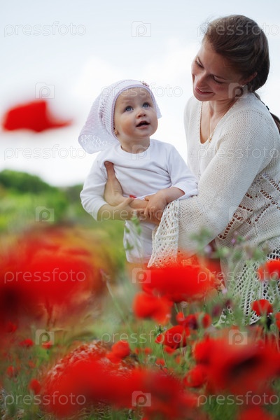 Мать с ребенком на маковом поле