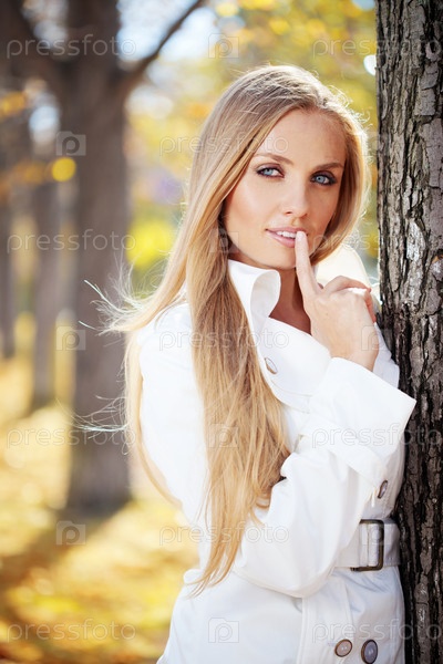 Портрет красивой молодой женщины на осенней прогулке
