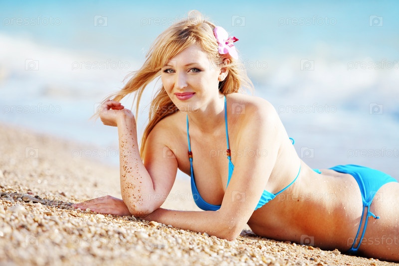 Красивая молодая женщина отдыхает на пляже