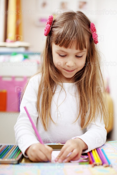 Маленькая девочка рисует дома