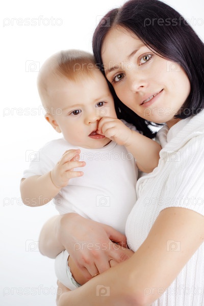 Молодая мать с ребенком в студии