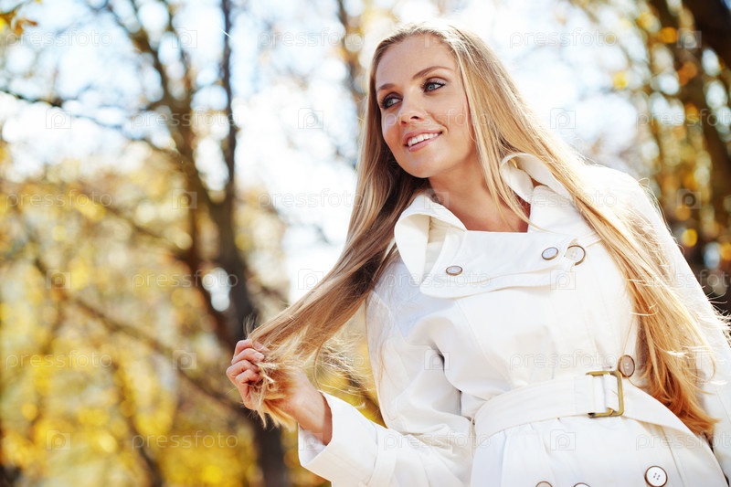 Портрет красивой молодой женщины на осенней прогулке