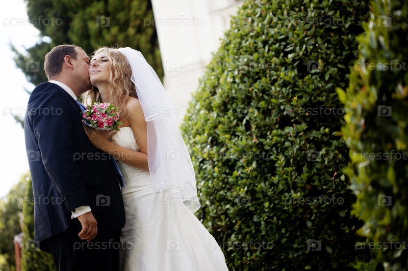 Счастливые жених и невеста в день свадьбы