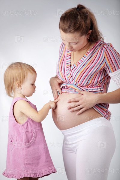 Беременная женщина с дочерью
