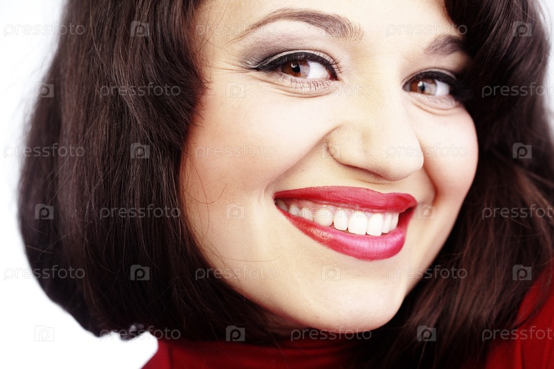 Студийный портрет привлекательной брюнетки с ярким макияжем крупным планом