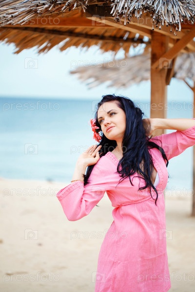Красивая молодая женщина отдыхает на пляже