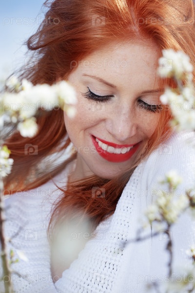 Весенний портрет красивой рыжеволосой девушки