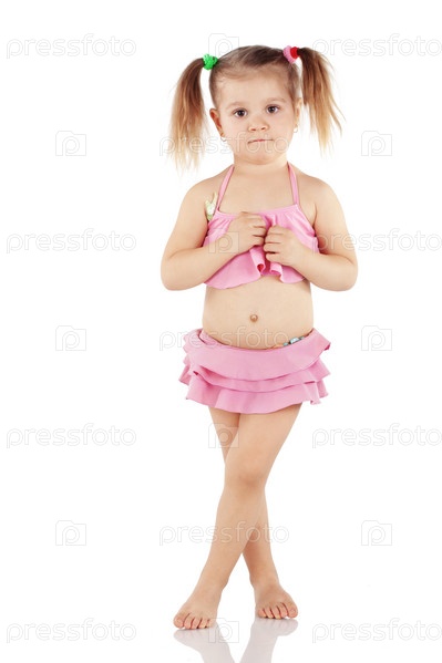 Ребенок в купальнике, изолированный на белом фоне