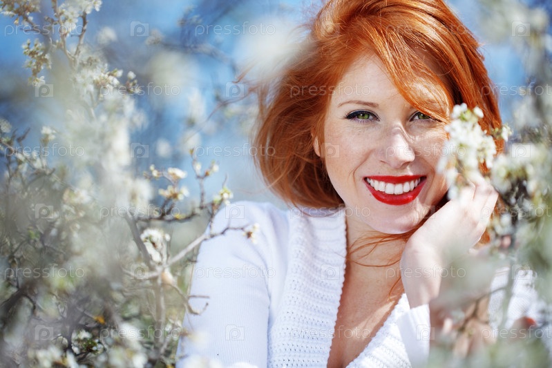 Весенний портрет красивой рыжеволосой девушки