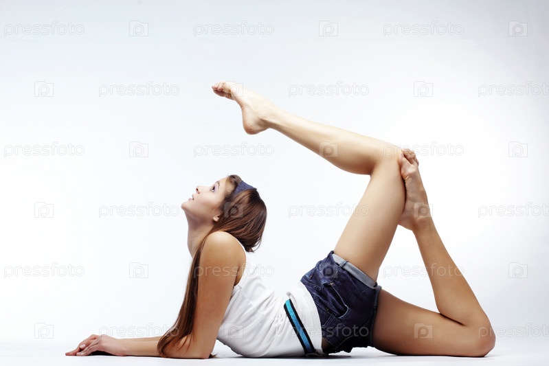Красивая девушка делает растяжку