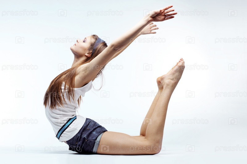 Красивая девушка делает растяжку