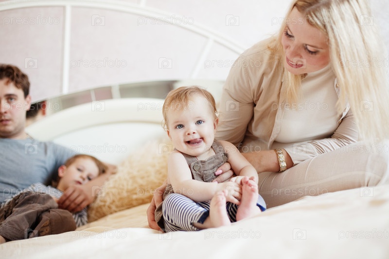 Счастливая семья с детьми дома