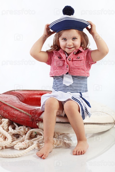 Портрет маленькой модной девочки в морском стиле