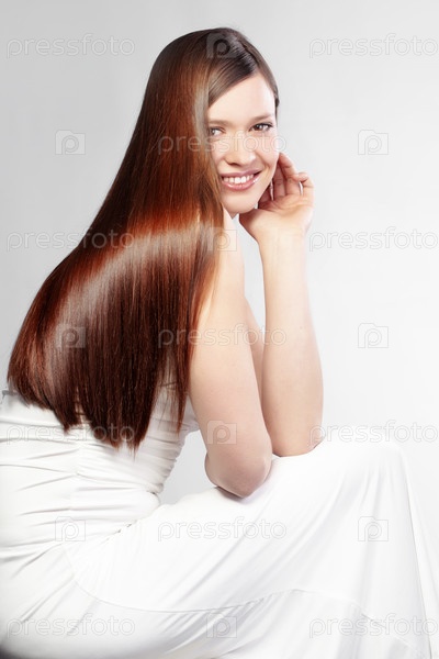 Портрет молодой красивой женщины с длинными блестящими волосами