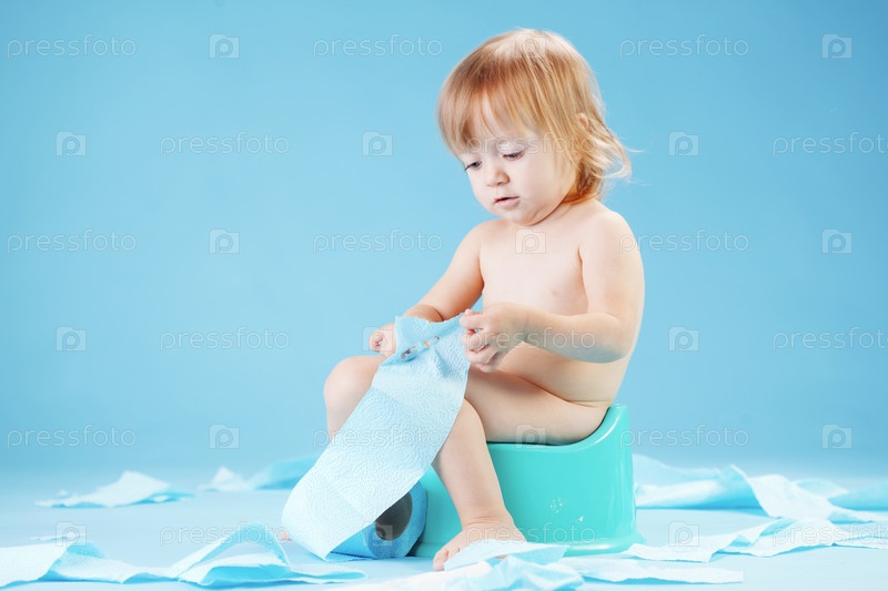 Смешной малыш сидит на горшке
