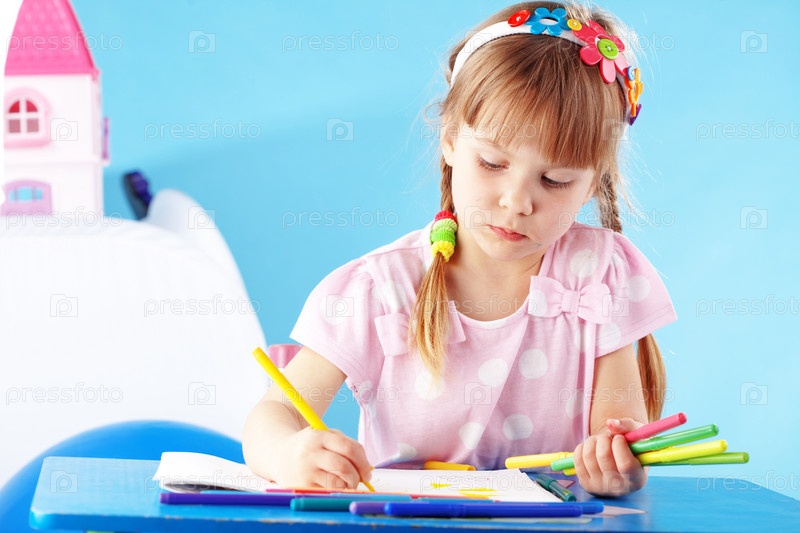 Маленькая девочка рисует дома