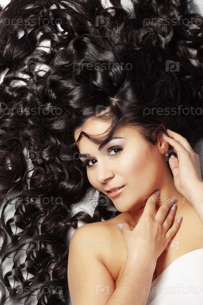 Портрет молодой красивой женщины с длинными блестящими волосами