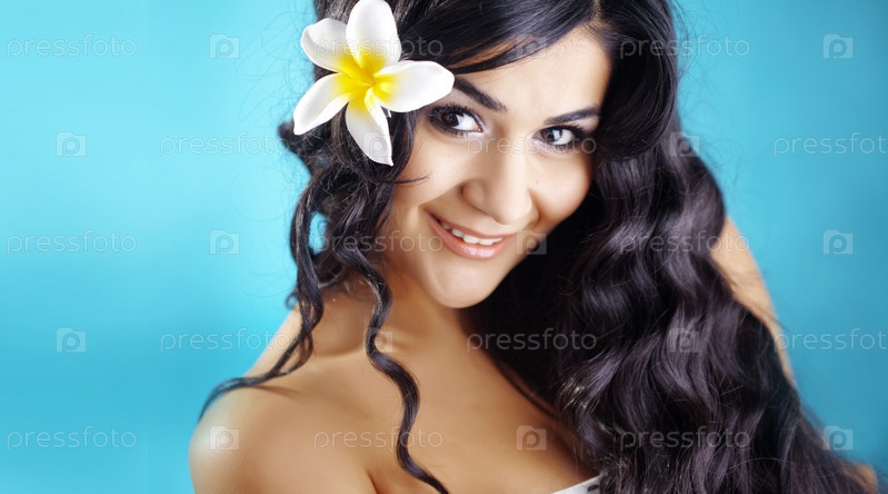 Портрет молодой красивой женщины с длинными блестящими волосами