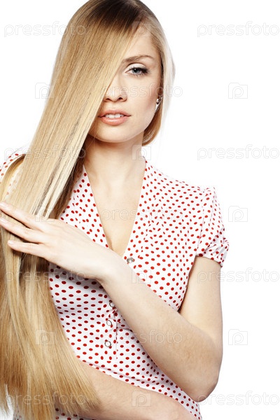 Портрет красивой женщины с длинными светлыми волосами