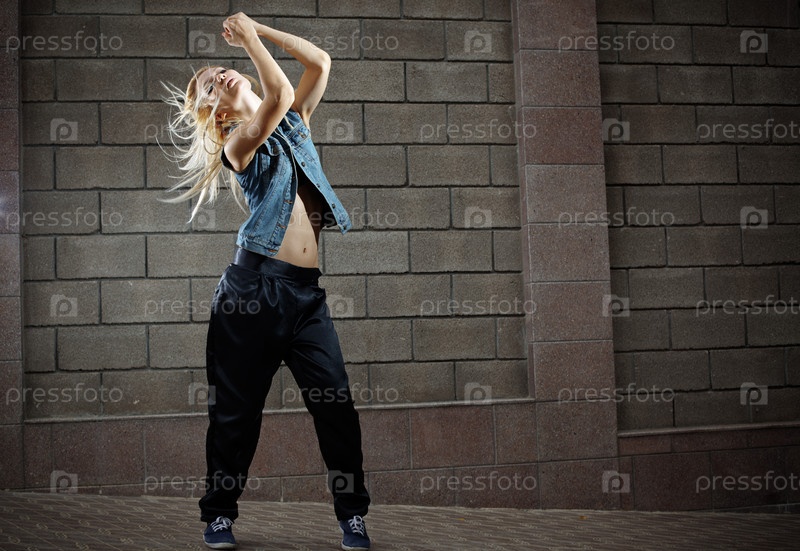 Танцор хип-хопа на фоне уличной стены