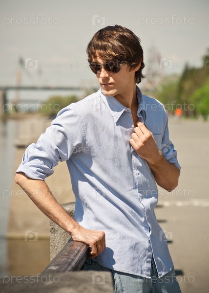 Молодой человек в солнцезащитных очках на свежем воздухе