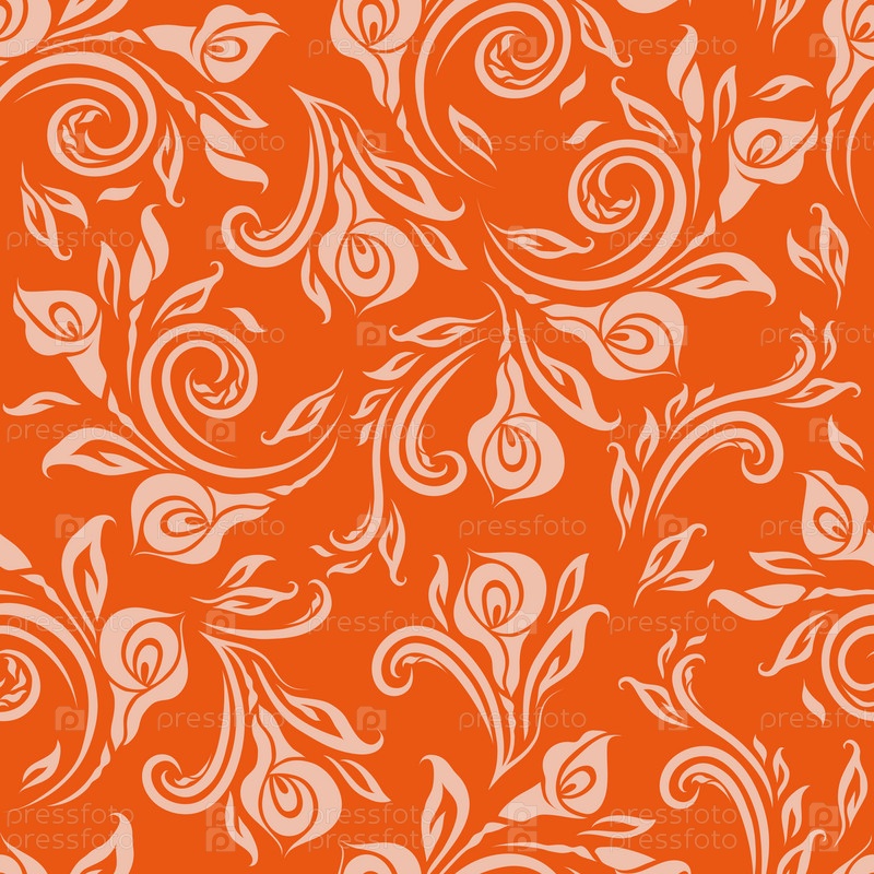 Бесшовный шаблон с бежевыми цветами на оранжевом фоне