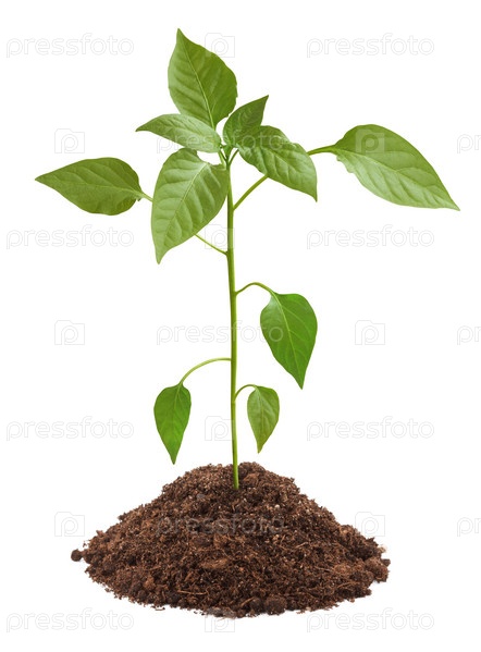 Молодое зеленое растение в почве, изолированное на белом фоне