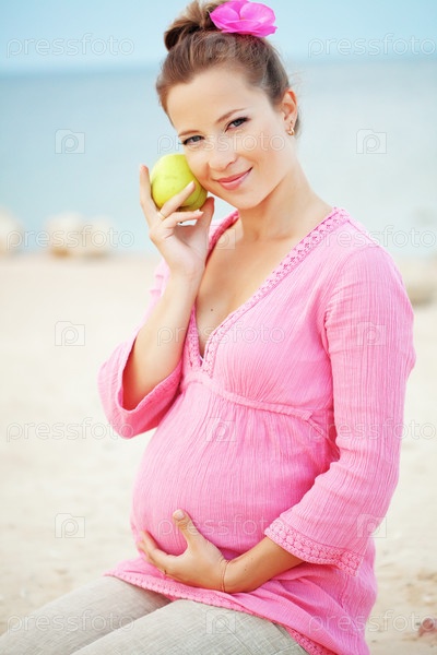 Портрет красивой беременной женщины на пляже
