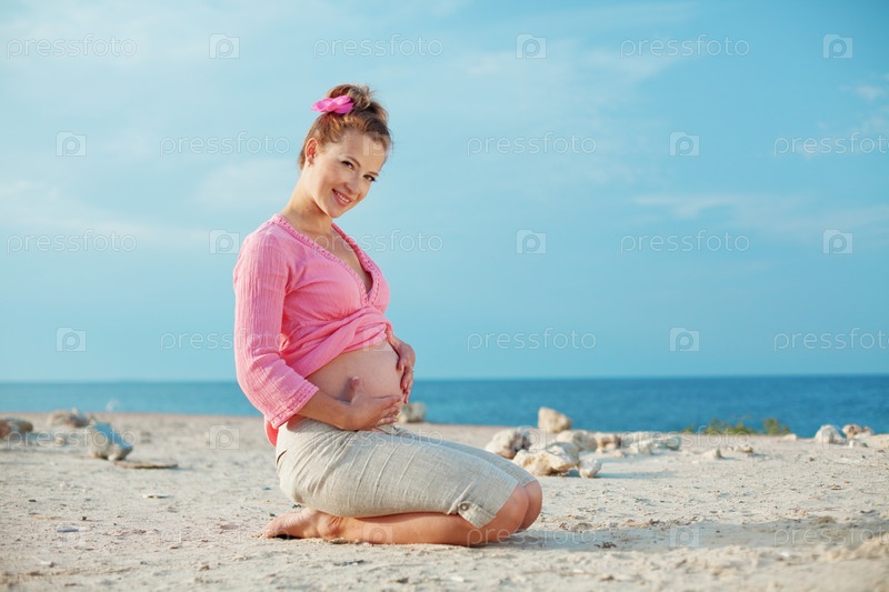 Портрет красивой беременной женщины на пляже