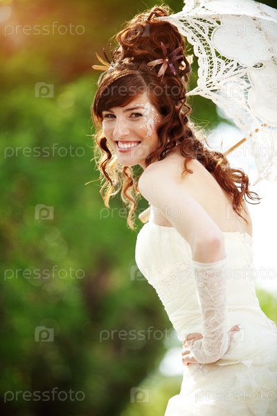 Красивая невеста на свежем воздухе