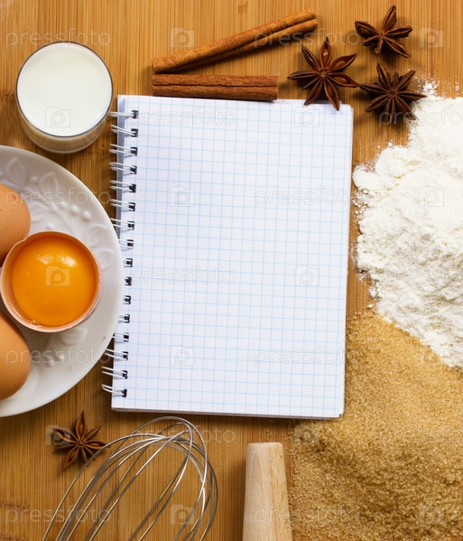 Пустой блокнот для рецептов с ингредиентами по выпечке