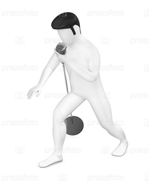 Парень с микрофоном в стиле рок-н-ролл, изолированный на белом фоне