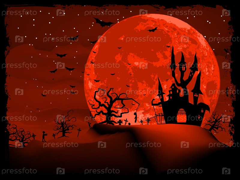 Страшный векторный шаблон на Хэллоуин с волшебным замком.Векторный файл EPS 8