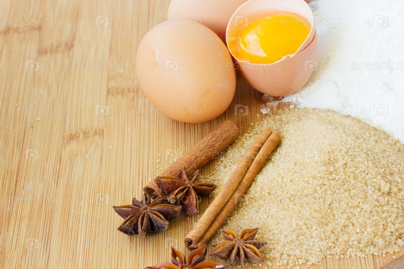 Ингредиенты для выпечки на деревянном столе с местом для текста