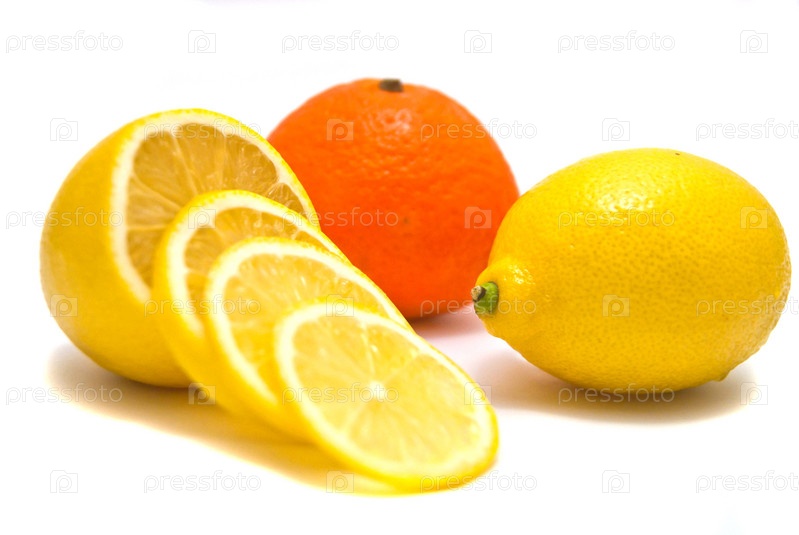 Свежие мандарин и лимон на белом фоне