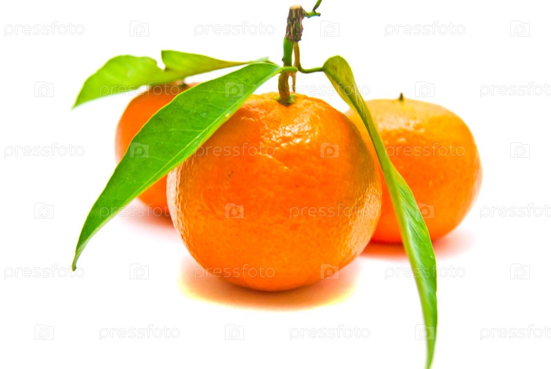 Свежие мандарины на ветке на белом фоне