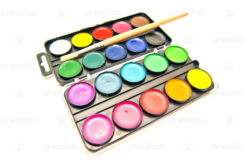Коробка красок на белом фоне