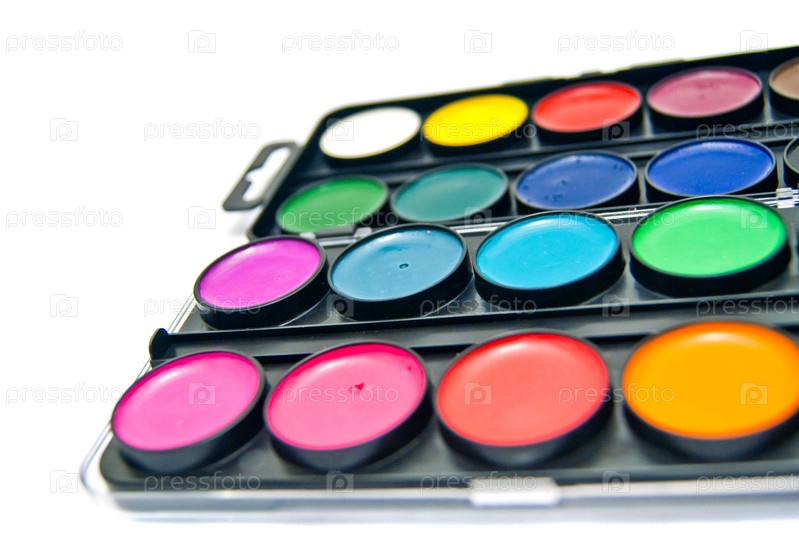 Коробка красок на белом фоне