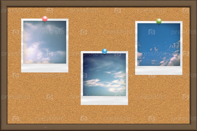 Пробковая доска для объявлений с фотографиями неба