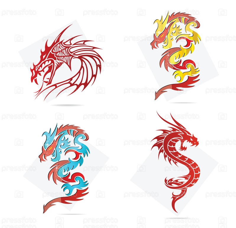 Набор изящных символов драконов, изолированных на белом фоне