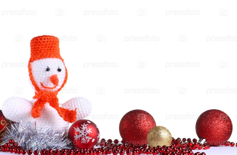 Белый снеговик, сделанные из ниток, на белом фоне