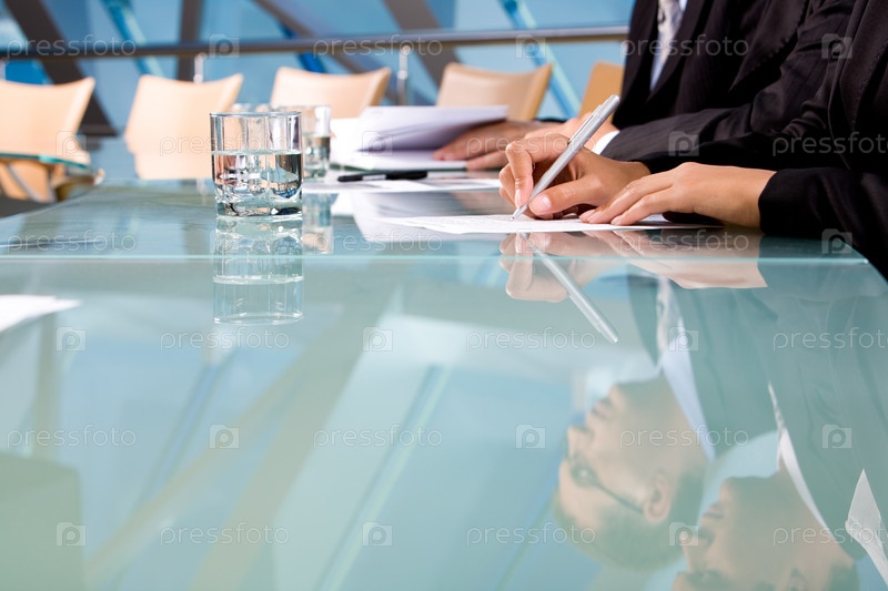 Человеческие руки, держащие ручку и делающие заметки во время конференции