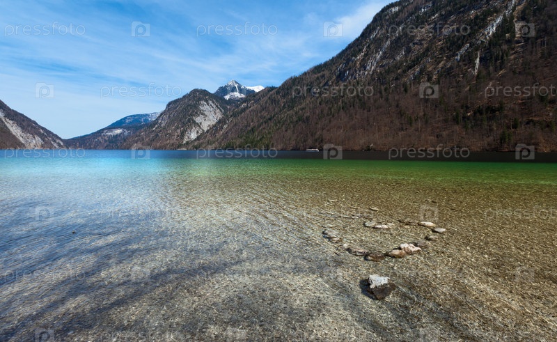 Красивый пейзаж с голубым небом и озером