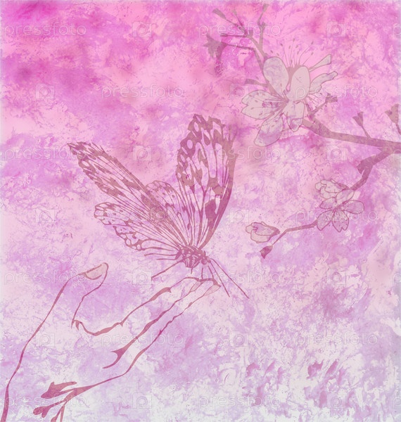 Бабочка с цветочным орнаментом на пурпурном фоне