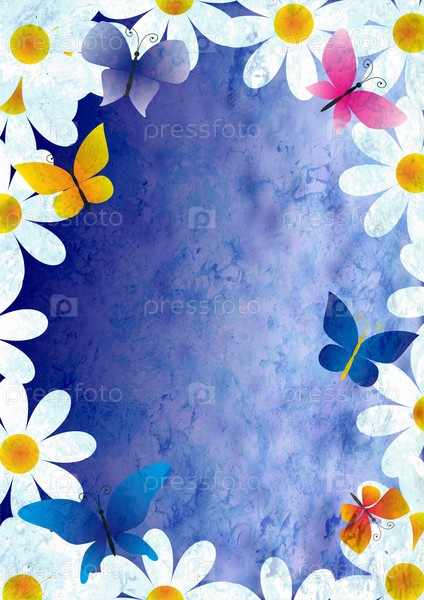 Цветы и бабочки на старинной бумаге. Весенний фон в стиле гранж