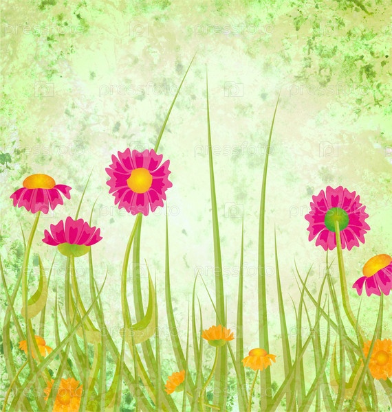 Цветы и трава на фоне из старой бумаги