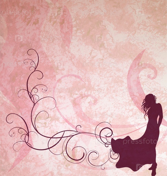 Силуэт женщины в платье на фоне из старой бумаги