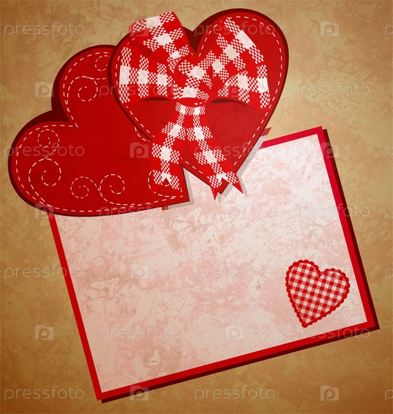 Красные сердца и рарточка на фоне из старой бумаги