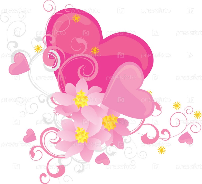 Розовые цветы и сердца ко Дню Св. Валентина, изолированные на белом фоне