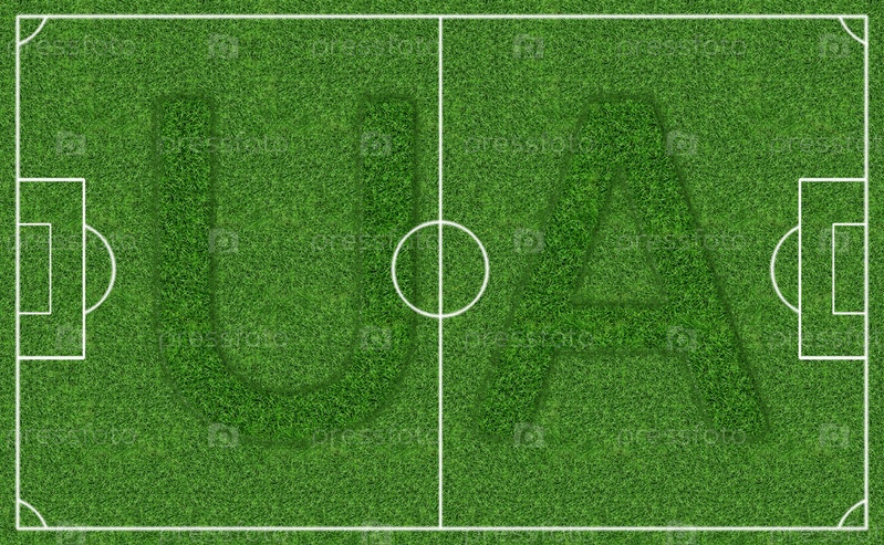 Поле футбольного стадиона с логотипом Украины